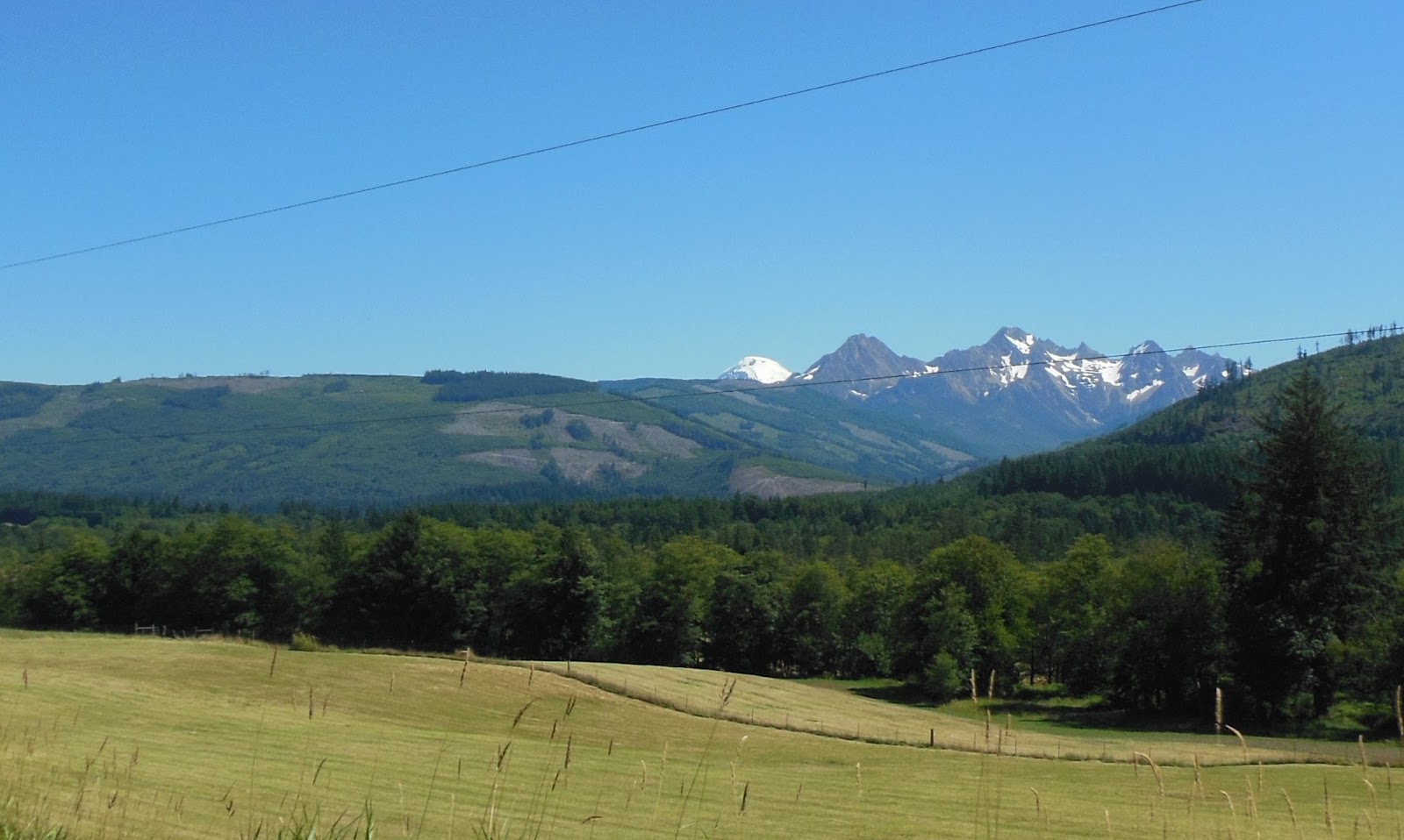 Mt Baker peeking out from behind the closer ridge.